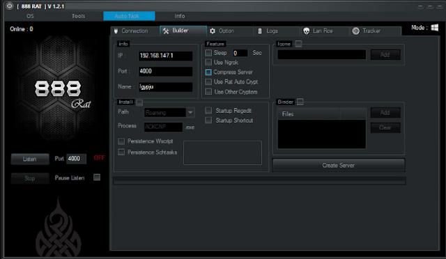 With the help of this tool, you can get a lot of many new features for android and Windows hacking. I provide you 888 RAT 1.2.7 At A Very Cheap Price Download Link and tutorial below.